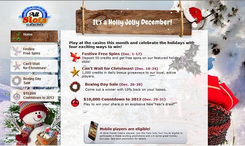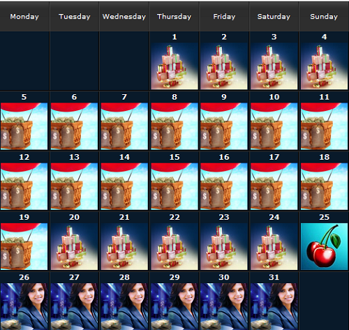 Say what? Each day in December has a Christmas promotion, switching among four different activities with varying qualification requirements.